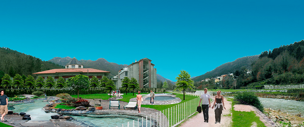 Idea original de la propuesta Ecocaldas, en el entorno del balneario de Lobios. (Crecente Asociados).